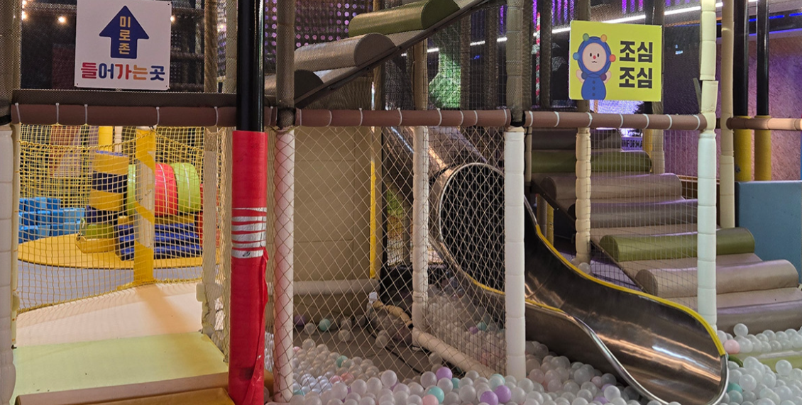키즈존은 따로 구성되어 있어요 키가 110cm 이상만 이용가능한 키즈존은 키즈 챌린지, 블럭존, 런닝존, 트램플린, 정글짐들이 있어서 유아들에게 천국인 장소예요