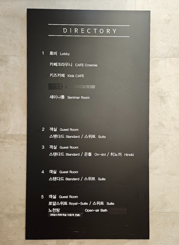 객실과 부대시설의 위치입니다.
