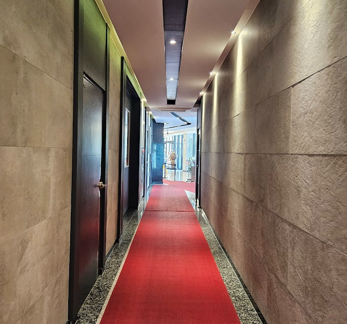 바닥에 보이는 붉은색은 레드카펫이 아니라 수영장이 메인이 호텔이라 미끄러지지 않게 보호해 주는 천이랍니다.