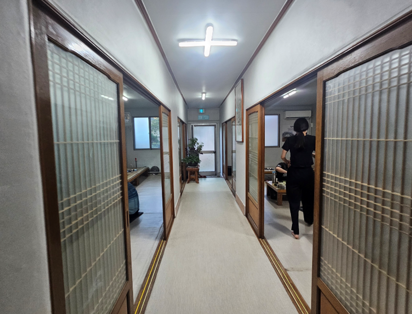 신발을 벗고 들어가는 좌식 테이블로 운영되며 내부는 여러 개의 방으로 나뉘어 있어 가족 단위 소모임에 적합했어요