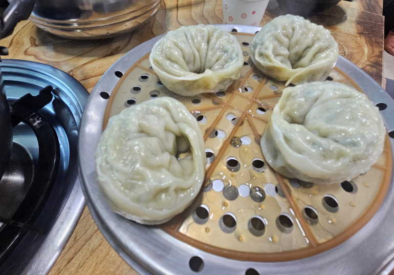 큼직한 크기로 속이 꽉 찬 내용물로 고기와 야채가 풍부하게 들어간 담백한 맛이었어요