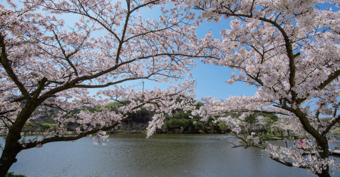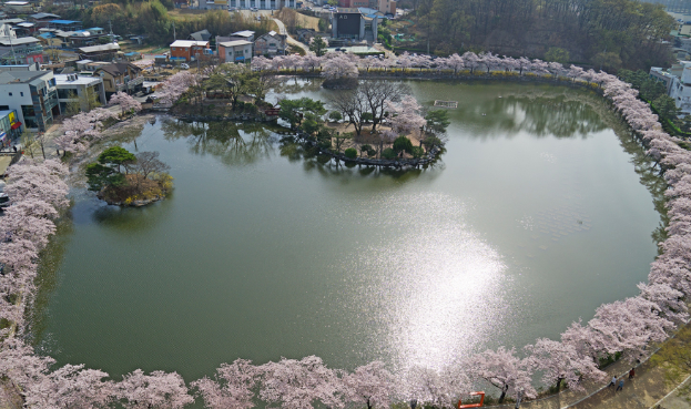 벚나무가 저수지를 빙 둘러 심겨 있어 풍경이 너무나 아름답습니다.