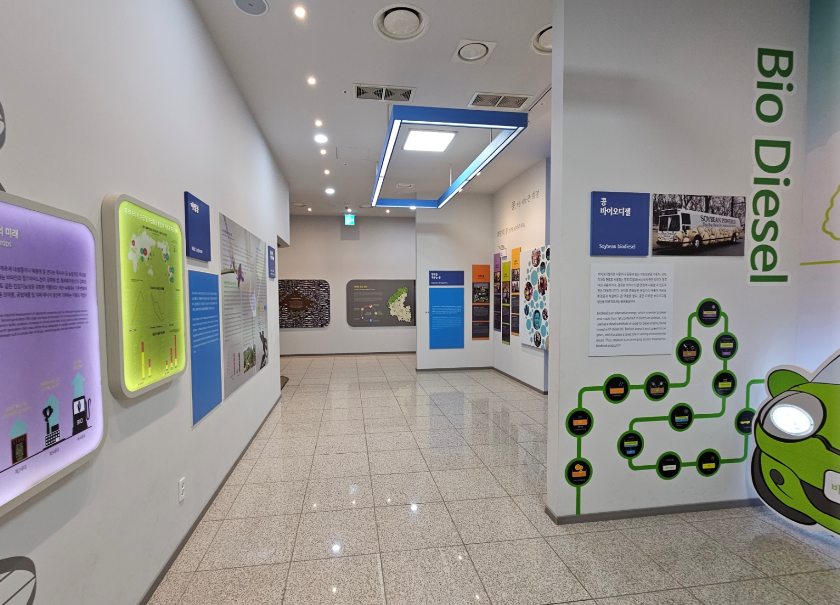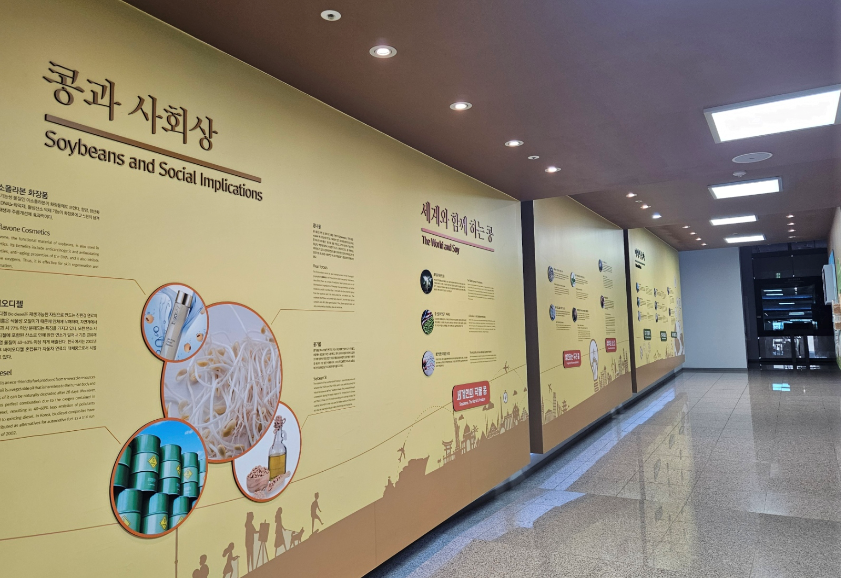 콩으로 만든 화장품, 세제, 바이오디젤 등 친환경 제품들이 전시되어 있고, 콩이 우주 작물로도 활용된다는 사실은 놀라웠어요. 콩의 무한한 가능성을 느낄 수 있는 공간이에요