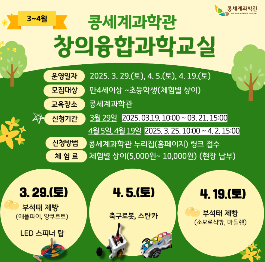 체험은 사전 예약을 받아서 운영하고 있었어요. 콩세계과학관 홈페이지를 통해서 신청을 받고 있었습니다.