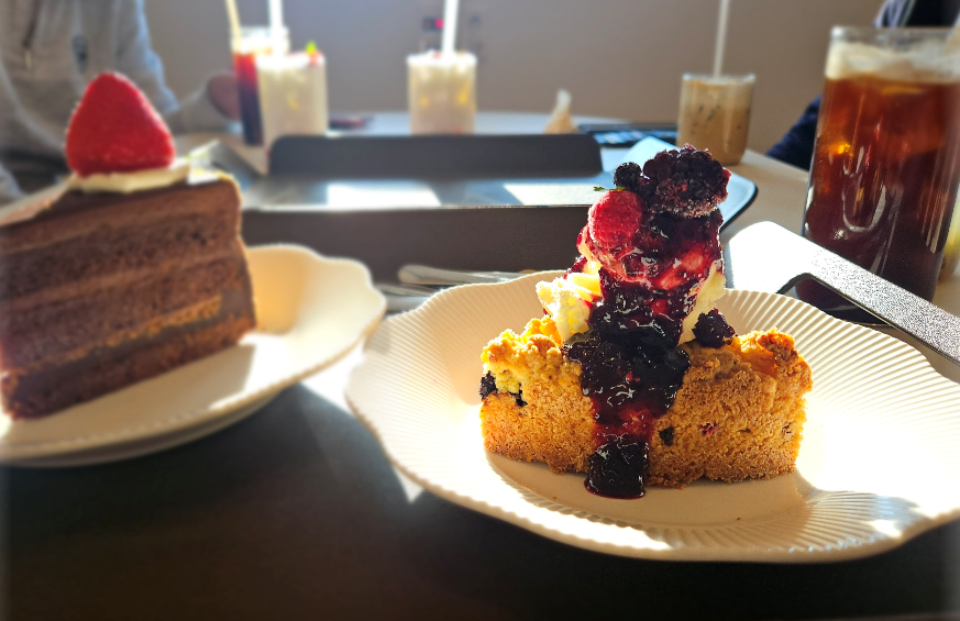 트리플 베리 크럼블 파이는 블루베리, 라즈베리, 블랙베리 3가지 베리로 만든 수제잼의 단맛과 바닐라 아이스크림의 조화가 좋았어요 딸기 초코 머드 케이크는 아이들이 제일 좋아하는 메뉴로 연신 포크질로 저희는 맛보지도 못했어요.