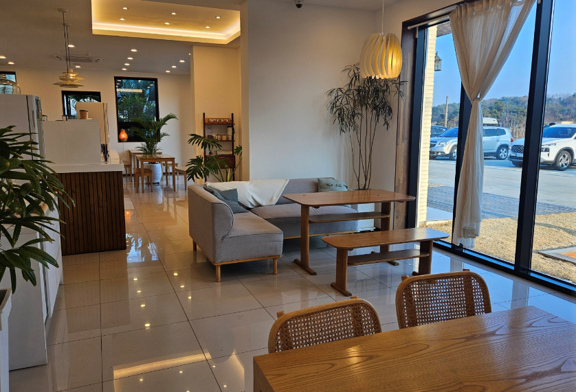 카페에 도착하자마자 넓은 주차장이 눈에 띄었어요. 주차 걱정 없이 편하게 방문할 수 있다는 점이 좋았어요.