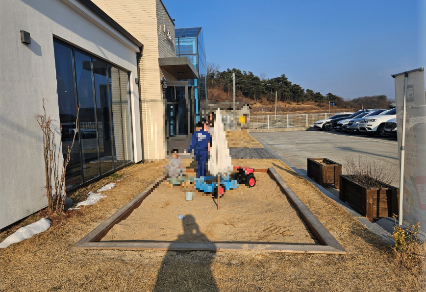 카페 내부에서 아이들 모래놀이 하는 모습을 볼 수 있었어요