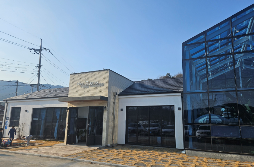 메이블룸 카페는 독특한 온실 구조와 시골마을의 감성이 어우러진 힐링 공간이었어요. 날씨가 좋은 날에는 야외에도 테이블이 있어 즐기기에 좋을 것 같았어요.