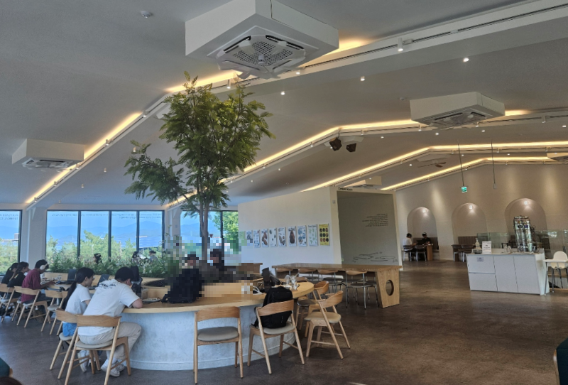 높은 천장과 3면이 유리창으로 되어 있어 개방감이 정말 좋았어요
