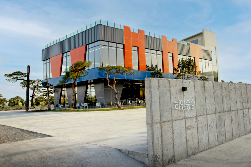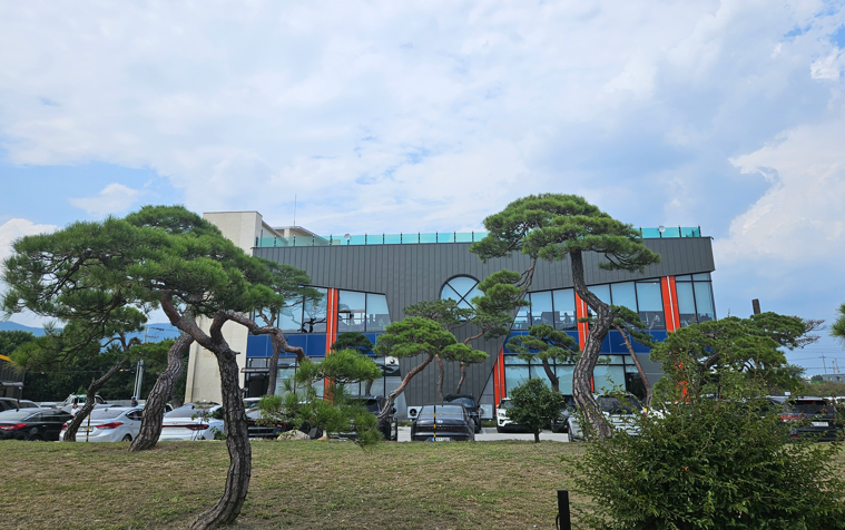 하양송송 제빵소는 조용한 하양읍 하양유원지길에 위치해 있으며 넓은 주차장을 보유하고 있습니다. 근처에 하양유채꽃단지도 있어서 카페를 이용하시고 산책하시기도 좋습니다. 큰길에서 대부잠수교를 건너와서 좁은 도로를 따라 이 길이 맞나 싶을 때 하양송송 제빵소에 도착할 수 있습니다. 매장 부근에 오르막길과 옆길이 있는 경우 오르막으로 올라오시는 게 카페로 진입하기에 용이합니다. 주말에는 주차장이 아주 넓었는데도 불구하고 차량들로 가득 차 있어서 주차가 조금 힘들 수 있습니다. 현대적인 대형 건물이 있고 건물 주변으로 소나무가 심겨 있습니다. 하양송송이 무슨 뜻일까 했는데 송송하다는 말이 별빛이 맑고 또렷하다는 우리말이었네요.
