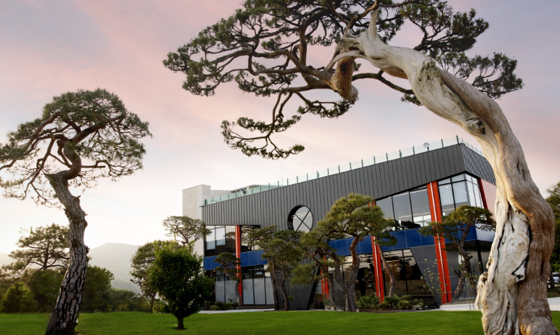 카페 외부에 조성되어 있는 소나무 산책로는 약 3km로 전국 최대 규모를 자랑하며 부드러운 흙길로 사시사철 푸르른 솔잎을 느낄 수 있다고 소개하고 있습니다.
