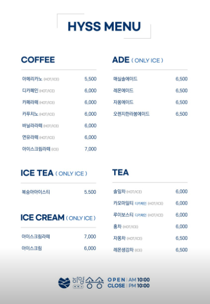 음료는 보통 카페처럼 일반적인 메뉴입니다. 아메리카노, 라떼 등이 있고 아이들을 위한 음료수도 준비되어 있어요