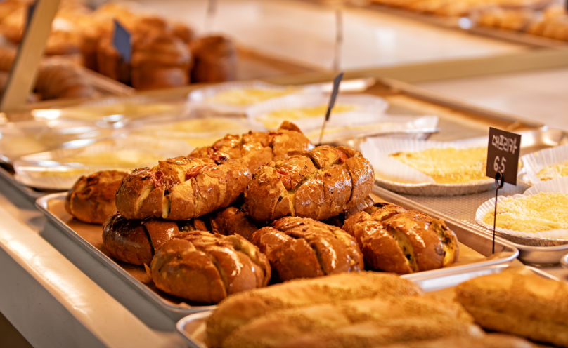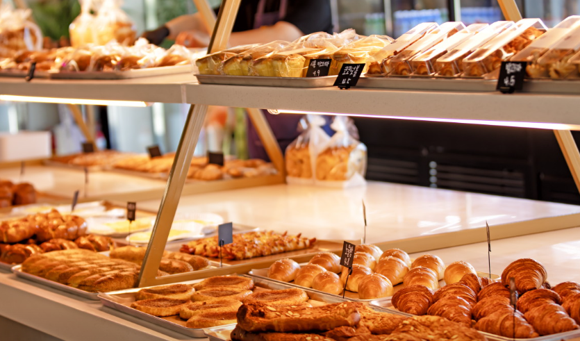 카페 내부에 들어서면 고소한 빵 냄새가 감싸며, 넓고 깔끔한 공간이 시각적으로 만족스럽습니다.