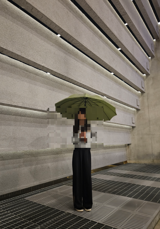 인필름이 유명한 이유는 카페 내부에 365일 비가 내리는 공간이 존재하기 때문이에요. 계단 구성으로 건물을 건축한 것도 비가 오는 것을 연출하려고 그랬나 봐요. 우산도 비치되어 있고 여기서 인스타 사진 진짜 많이 찍으시더라고요.