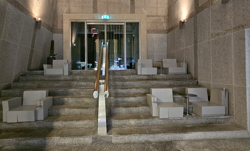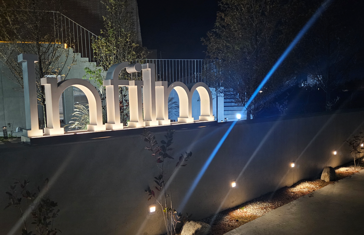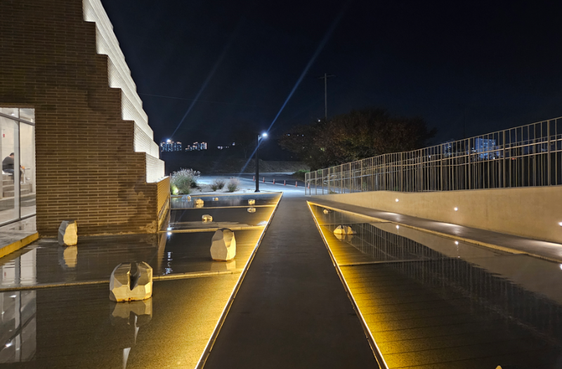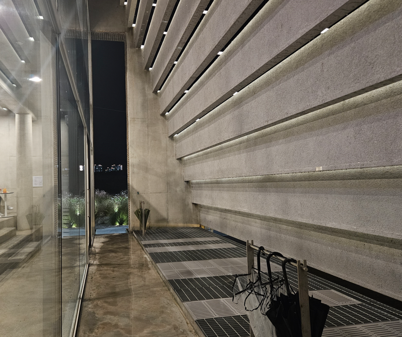 주차장 진입로에 연못 처럼 물이 있어요. 계단식 건물 구조와 연못 중간으로 가로지르는 길위에서 사진이 진짜 이쁘게 나온답니다.