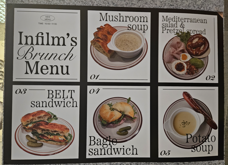인필름은 독창적인 인테리어와 맛있는 메뉴, 그리고 사진 찍기 좋은 분위기 덕분에 인기가 있는 것 같습니다. 특히 커피 한잔하며 빗소리 들으며 여유를 즐기기 좋습니다. 어린아이들과 함께 방문하기 보다는 데이트 코스에 더 적합한 장소 같았습니다. 단순한 카페를 넘어 예술과 일상의 만남을 느낄 수 있는 공간이었습니다.