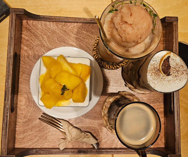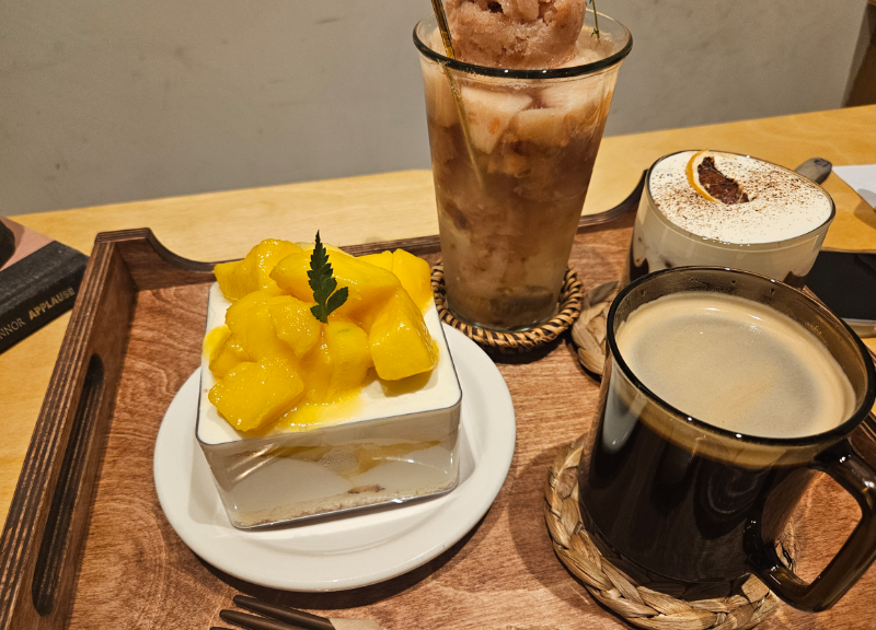 아이 생일기념으로 간 거라서 리얼 망고 케이크와 아메리카노와 복숭아 에이드를 주문했어요.