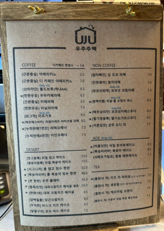 우주주택은 경산 하양의 주택가에 위치해 있어서 가는 길에 여기 정말 유명한 카페가 있는게 맞아? 할 정도로 의구심이 들었습니다. 저는 저녁에 자차로 갔기에 처음에는 길을 잘못 들어선 줄 알았습니다. 네이버 지도나 T맵에서 우주주택을 검색하고 갔기에 도착은 했는데 주택가에 있어서 처음 가시는 분들은 혼동하실 수 있어요. 경일대, 호산대 기점으로 진입하시어 경일대 정문을 기준으로 도보 5분 거리에 위치해 있습니다. 주차는 가게 앞 도로가 한적해서 도로가에 편한곳에 주차를 해도 됩니다.