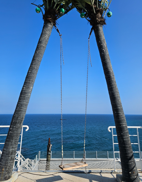 엘라포니시는 곳곳에 사진 찍기 좋은 장소가 여럿 있습니다. 특히 야자수 아래에서 그네를 탈 수 있게 되어있는데 여기서 감포바다를 바라보며 사진을 찍으면 정말 인생샷 건질 수 있습니다.