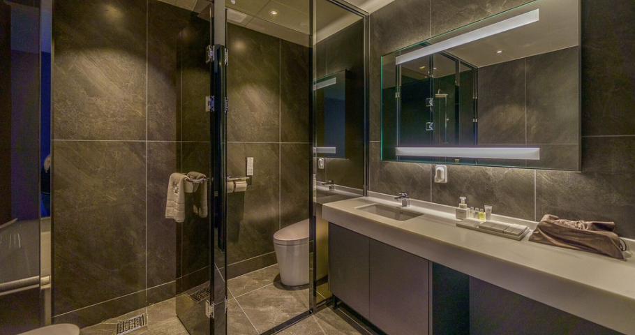 세면대는 밖으로 나와 있어 공간이 넓어 보였고, 샤워부스와 비데가 설치된 화장실도 청결하고 깔끔했습니다. 외출용 슬리퍼도 마련되어 있어 수영장이나 루프탑을 이용할 때 편리했습니다.