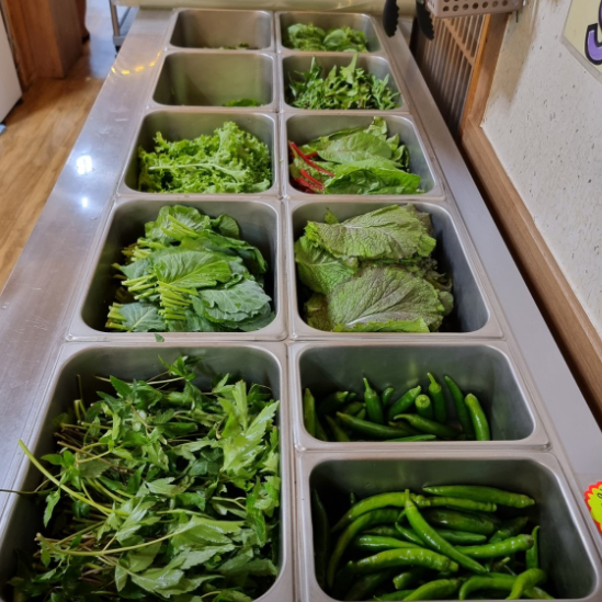 신선한 쌈들을 셀프로 가져다가 먹으면 됩니다. 나이가 들수록 이런 신선한 채소들이 좋아집니다.