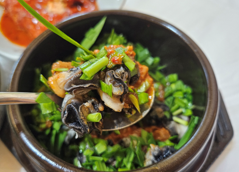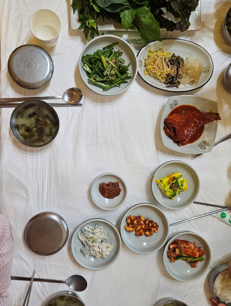 강된장은 깊고 진한 맛이 나서 쌈과 함께 먹으니 맛있었답니다. 특히 강된장이 짜지 않아서 좋았어요. 그리고 우렁이도 신선하고 쫄깃한 식감이 일품이었어요. 식사 중간중간에 다양한 반찬들도 즐겼습니다.