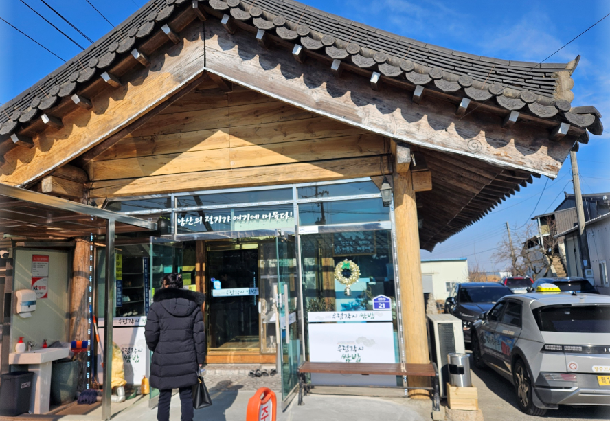 식당에 도착하니 넓은 주차장이 있어서 주차하기도 편했습니다. 식당 바로 건너 전용 주차장이 있어서 편리했습니다. 차에서 내려 식당 입구로 들어가면 본관과 별관 두 개의 건물을 볼 수 있습니다. 12시 5분 전에 도착했음에도 불구하고 식당은 만석이었습니다. 입구에 대기 번호판에 이름과 인원을 적고 밖에서 대기를 하면 순서에 따라 들어갈 수 있어요. 대기 시스템이 체계적이지 않아서 보완이 필요해 보였어요
