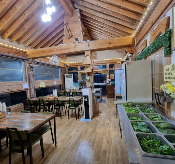 식당 안으로 들어가면 빼곡히 테이블이 있습니다. 테이블 마다 식사하는 손님으로 분주했어요. 홀과 방으로 되어 있습니다. 생각보다 공간이 좁아서 이동하는데는 불편했습니다. 그래도 테이블이 넓어서 식사하는 데에는 불편한 점은 없었습니다.