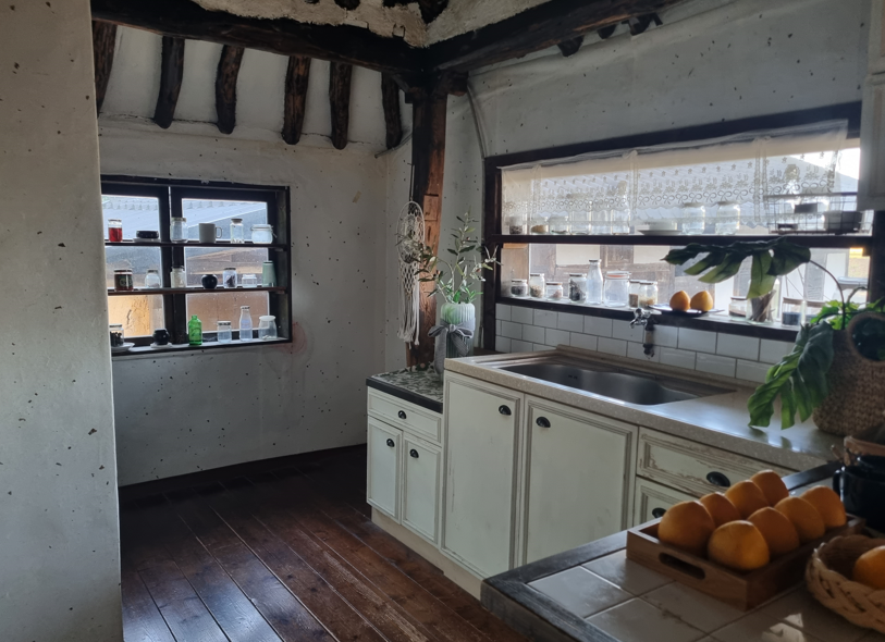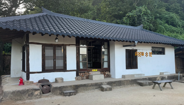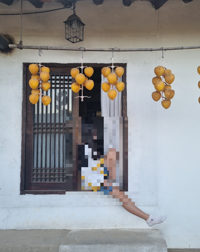 집 외관에는 처마 아래 매달린 곶감과 텃밭이 조화를 이루며 영화 속 그대로의 분위기를 느낄 수 있습니다.