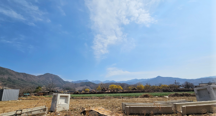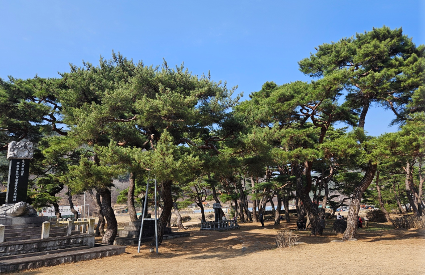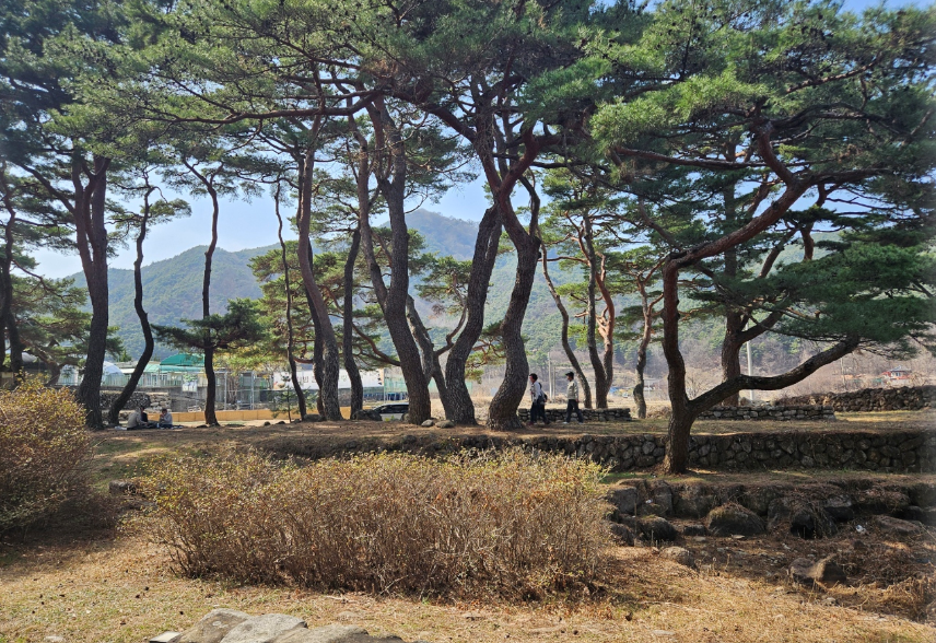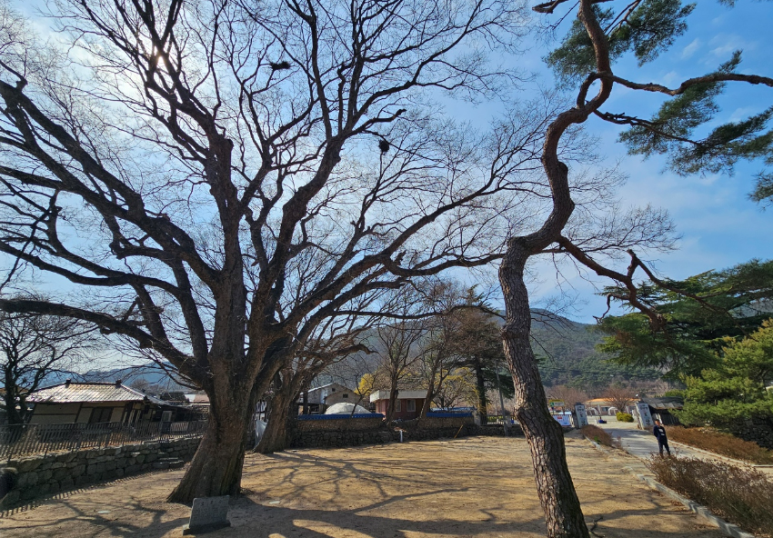 삼면이 팔공산으로 둘러싸여 있어서 마을 쪽으로 바람이 세차기 부니 마을 입구에서부터 소나무를 많이 심어서 바람을 막았다고 해요