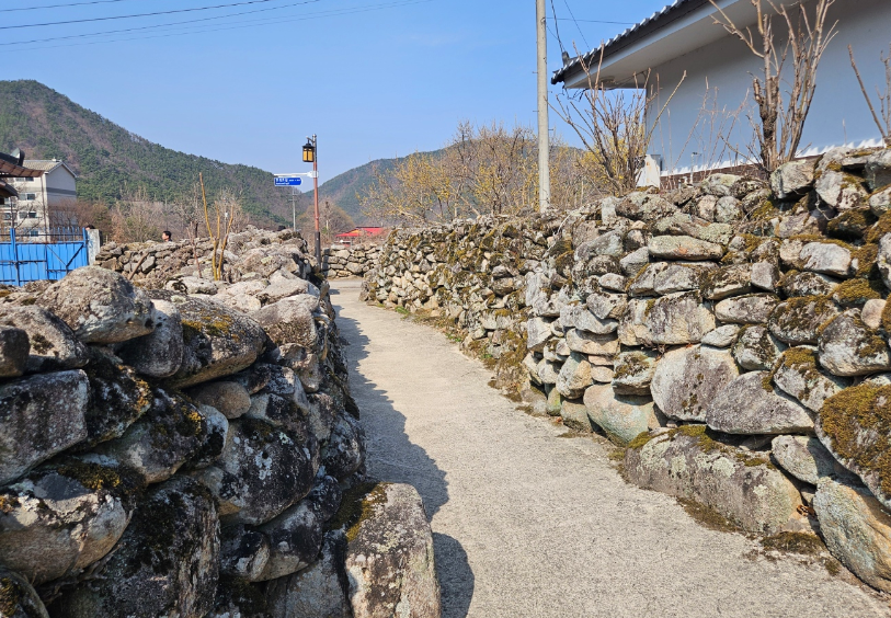 특히 오래된 한옥과 어우러진 돌담길은 한 폭의 그림 같아요. 돌담의 역사도 흥미로웠는데 1930년대 큰 홍수로 팔공산 계곡의 돌들이 마을로 떠내려와 그것으로 마을주민들이 돌담을 쌓았다고 해요