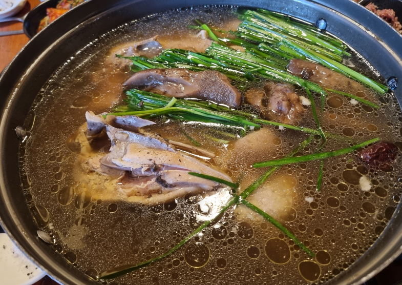 시골밥상의 백숙은 부드러운 닭고기와 진한 국물 맛이 돋보였습니다. 약재가 듬뿍 들어간 육수는 깊고 구수한 풍미를 자랑하며, 속을 따듯하게 데워주는 느낌을 주었습니다.
