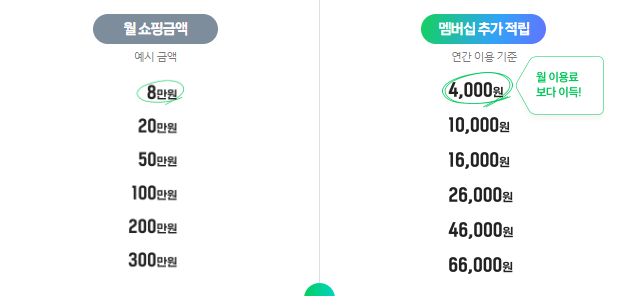 월 4,900원으로 쇼핑 결제 시 포인트를 최대 5%까지 추가로 적립해 줍니다.