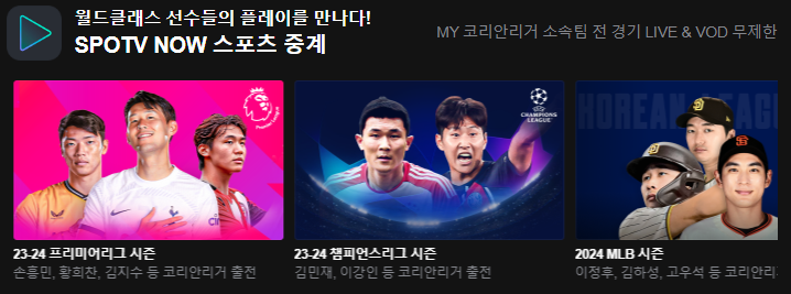 특히 손흥민 선수의 프리미어리그와 김하성, 이정후 선수의 메이저리그 실시간 중계로 인기가 많은 곳입니다.