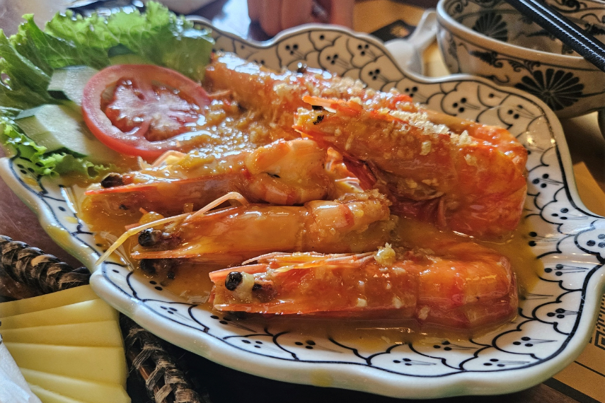 통새우가 큼직하게 나오고, 같이 나온 바게트가 진짜 핵심이에요. 새우 다 먹고 남는 소스를 바게트로 찍어 먹으면 “아, 그래서 빵이 같이 나오는구나” 납득하게 됩니다.