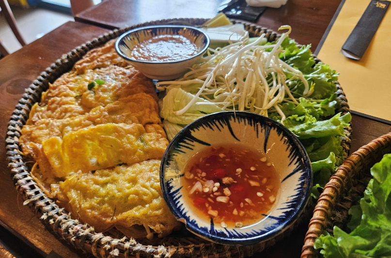 이 집의 하이라이트는 확실히 반쎄오였어요. 미쉐린에서도 반쎄오를 “바삭하고 황금빛”으로 소개하고, 속 재료로 당근·돼지고기·새우·오징어가 들어간다고 설명하거든요.