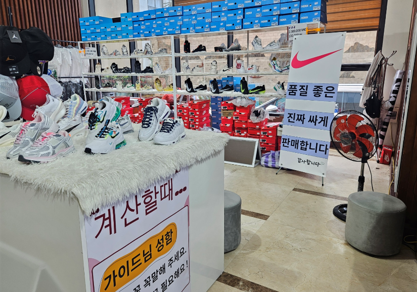 아디다스, 나이키 등 유명 브랜드 로고가 있는 의류를 구입할 수 있어요