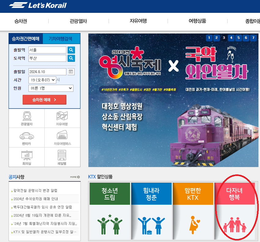 철도 할인을 위해서는 코레일 홈페이지 회원가입 및 다자녀 인증을 해야 합니다.
