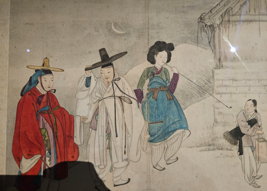 신윤복의 작품을 만나기 위해 20분 정도는 기다렸던 것 같아요. 아이들은 작품들을 가까이서 보고 "이 그림 정말 진짜 같아!"라며 감탄을 금치 못했답니다.