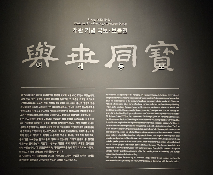 대구간송미술관은 2024년 9월 3일 개관하였으며, 간송미술관의 최초의 지역분관으로 간송미술문화재단이 보유하고 있는 국보, 보물을 상설 전시하는 공간으로 운영하고 있습니다.