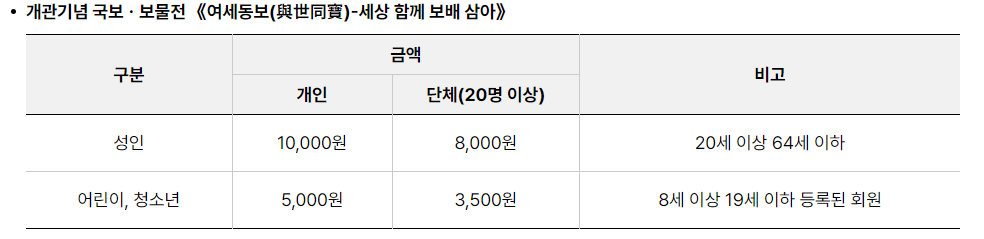 입장료는 성인은 10,000원 어린이, 청소년은 5,000원입니다. 주민등록상 주소지가 대구인 사람은 관람료 20%의 할인이 되고 다자녀카드가 있는 가정은 30%의 할인을 받을 수 있습니다. 만 7세 이하 및 만 65세 이상은 무료이고 신분증을 가지고 현장 발권을 하시면 됩니다.