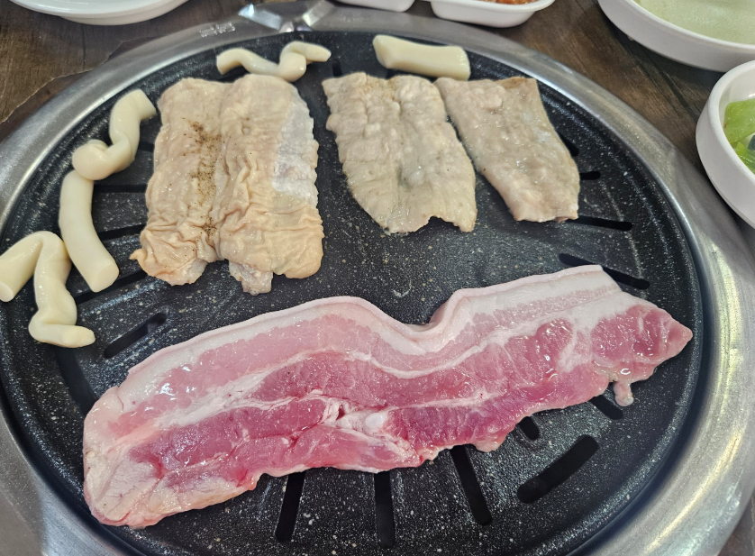 삼겹살이 정말 맛있었어요 고기 질이 좋고 두께도 적당해서 구워 먹기 딱 좋았어요