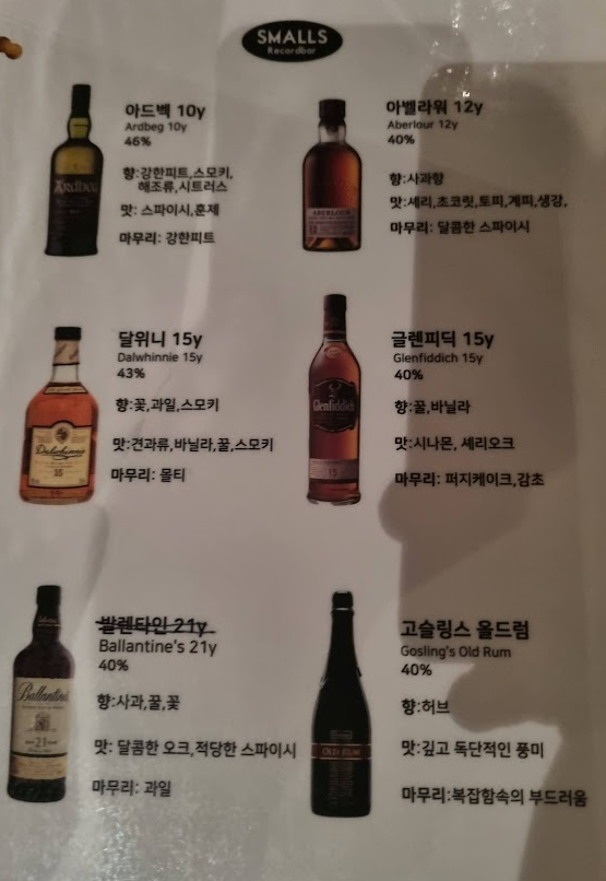메뉴를 보시면 저처럼 술에 대해 잘 알지 못하는 사람을 위해서 어떤 향과 맛인지 상세하게 설명되어 있어서 고르기 편했답니다.
