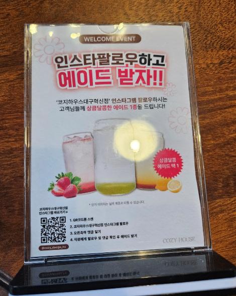 코지하우스 대구혁신점 인스타그램 계정을 팔우로 후 댓글 3줄 적기