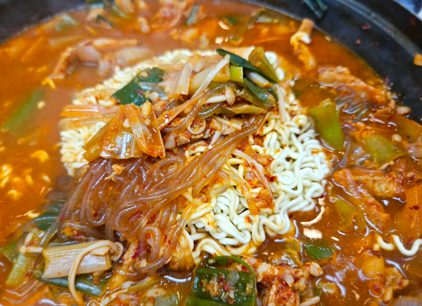 돼지찌개를 어느 정도 먹었다면 라면사리 꼭 추가하세요. 육수를 부어 라면사리까지 같이 먹어야 진정한 돼지찌개를 먹은 거니까요