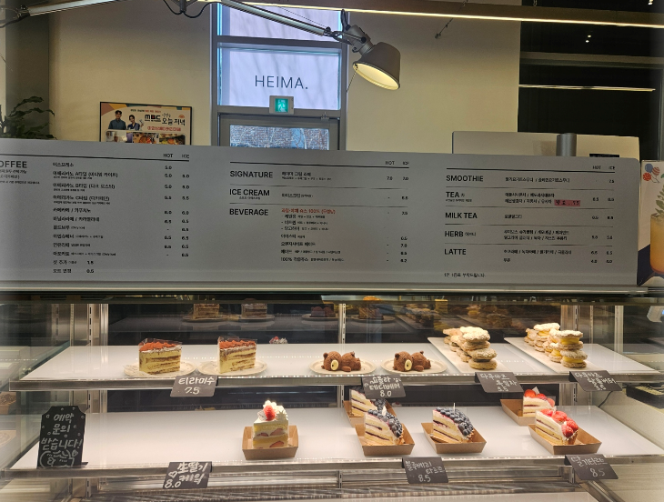 헤이마는 커피, 디저트, 베이커리 등 다양한 메뉴를 제공해요. 핸드드립 커피와 프리미엄 재료로 만든 음료가 돋보입니다.