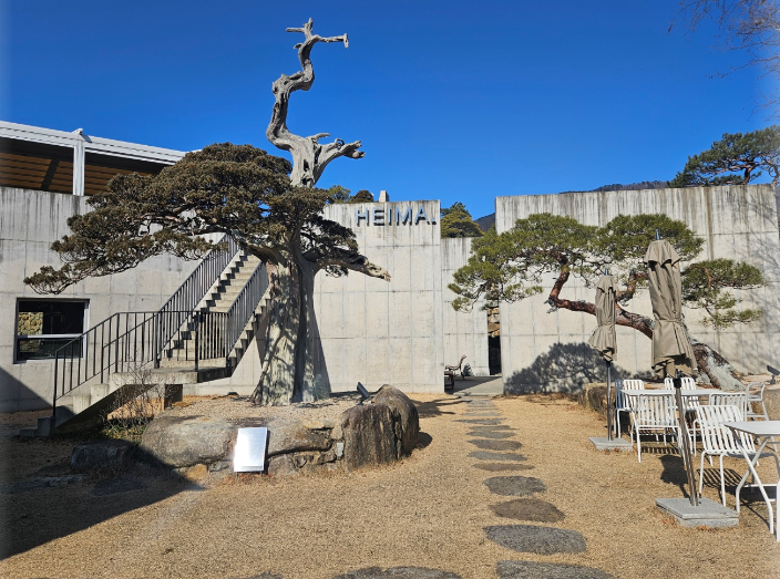 헤이마는 현대적인 건물외관과 자연이 잘 어우러져있어요. 이곳은 단순한 카페가 아니라 예술적인 감각이 돋보이는 공간으로 많은 사람들이 사진을 찍기 위해 방문하는 곳이기도 합니다.