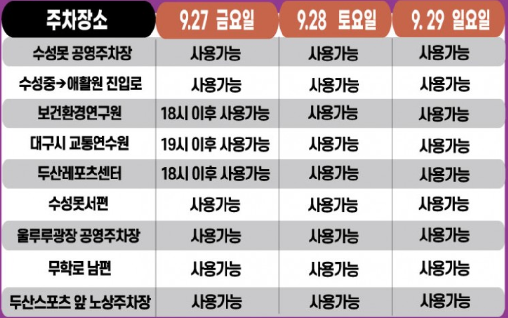 축제기간 이용가능한 주차장소는 아래와 같습니다.