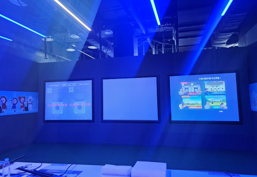 5대의 화면과 소파가 준비되어 있어 축구, 농구, 철권 등 다양한 게임을 즐길 수 있습니다. 스파크필드에서 보낸 시간 중 절반을 여기서 보냈어요 게임 좋아하는 아이는 환장하는 곳이랍니다.