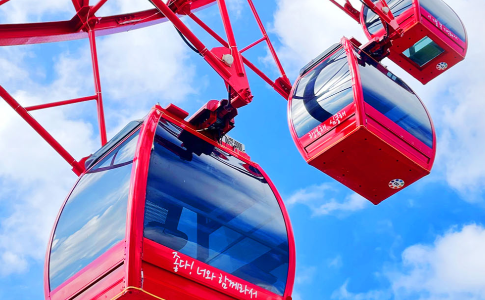 그리고 하늘그네도 생각보다 무서워요. 시원하게 펼쳐진 하늘 아래에서 그내가 점점 높이 올라가며 바람을 가르며 도는 순가 몸과 마음이 자유로워지는 경험을 할 수 있어요.